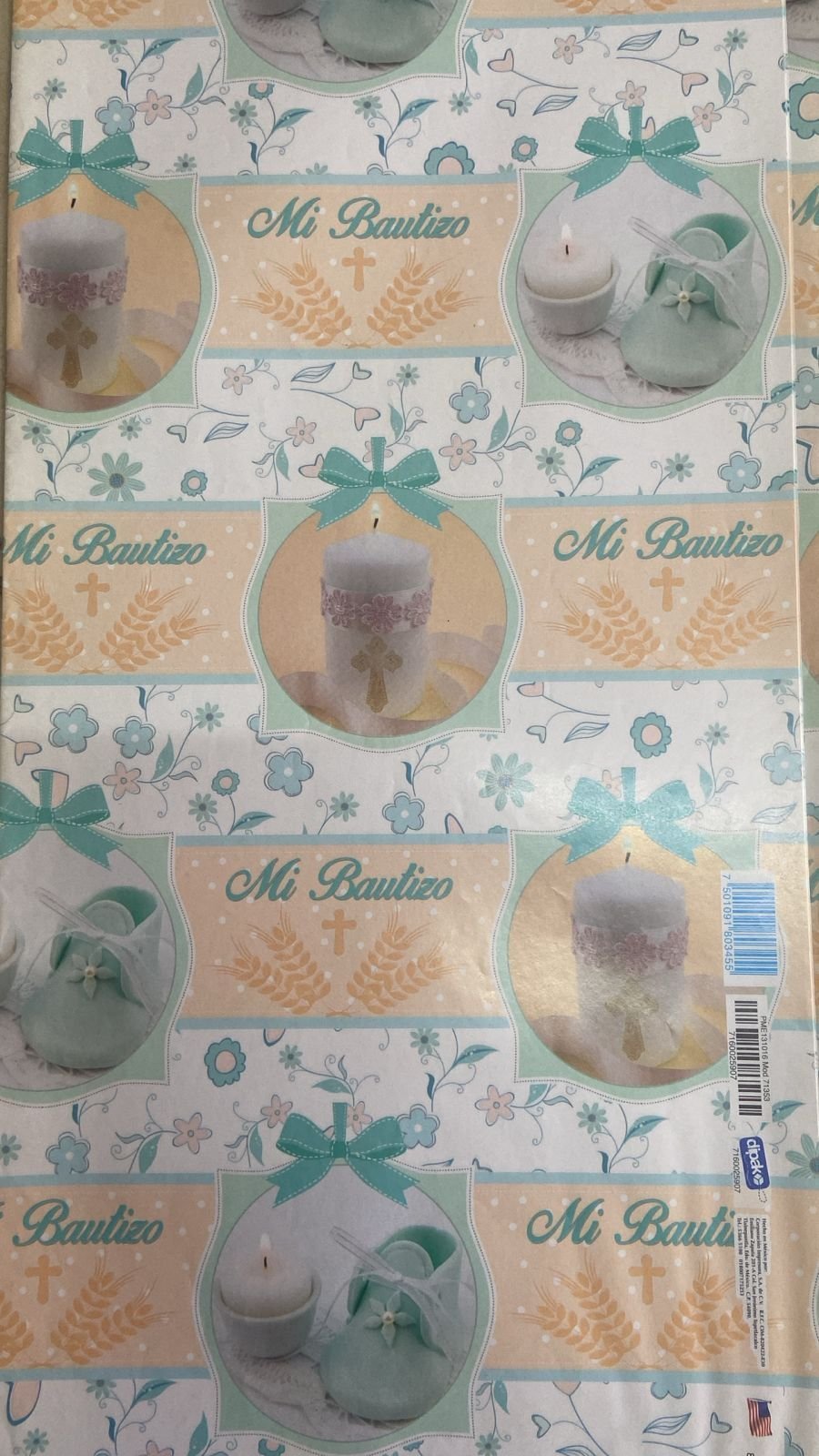 × PLIEGO DE PAPEL PARA ENVOLTURA DE REGALO "MI BAUTIZO" 1 PZA