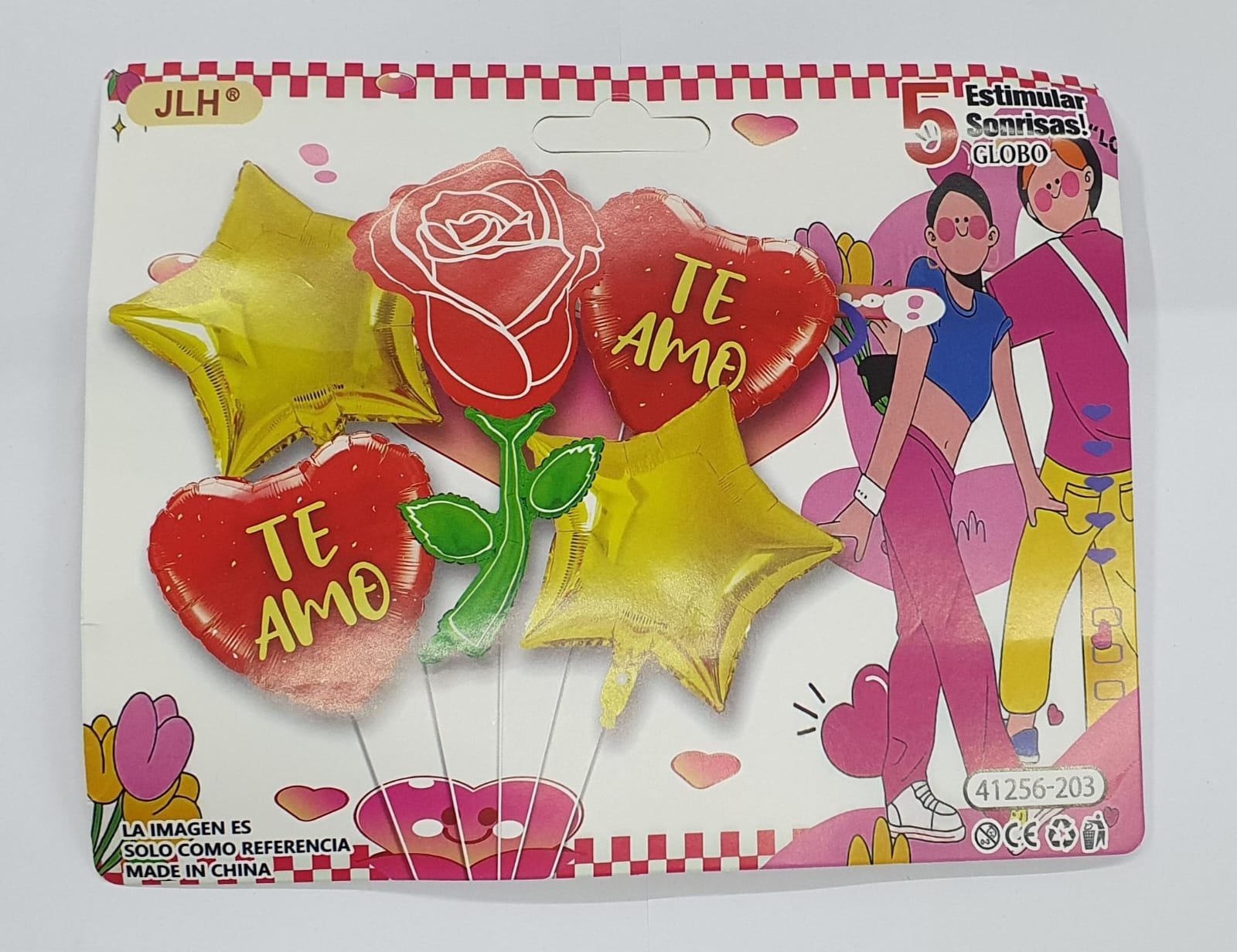 PAQ. 5 PZAS GLOBOS FOIL «TE AMO» SAN VALENTÍN CORAZONES ESTRELLAS FLOR