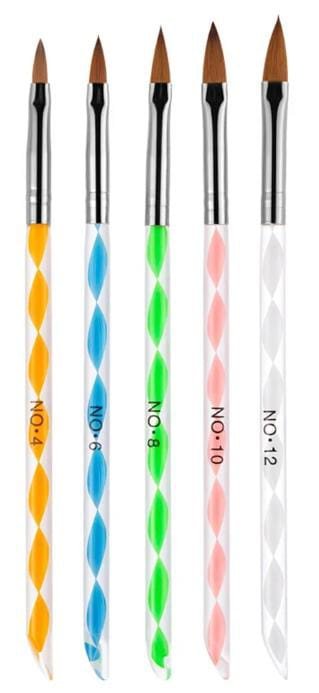 ¡Lleva tu creatividad al siguiente nivel con este completo set de 5 pinceles para uñas acrílicas! Diseñados con precisión y disponibles en varios tamaños y puntas, son ideales tanto para principiantes como para expertos en el arte de las uñas. Estos pinceles te permiten dar rienda suelta a tu imaginación, creando detalles intrincados y acabados profesionales desde la comodidad de tu hogar.