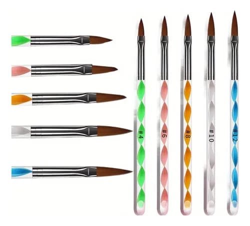 Este set de pinceles para uñas acrílicas es perfecto para trabajar con diferentes técnicas, desde líneas finas hasta degradados y detalles 3D. Disponibles en diversos tamaños y formas, estos pinceles son compatibles con una amplia gama de productos acrílicos y gel. Con esta herramienta imprescindible, lograrás resultados impecables que cautivarán todas las miradas.