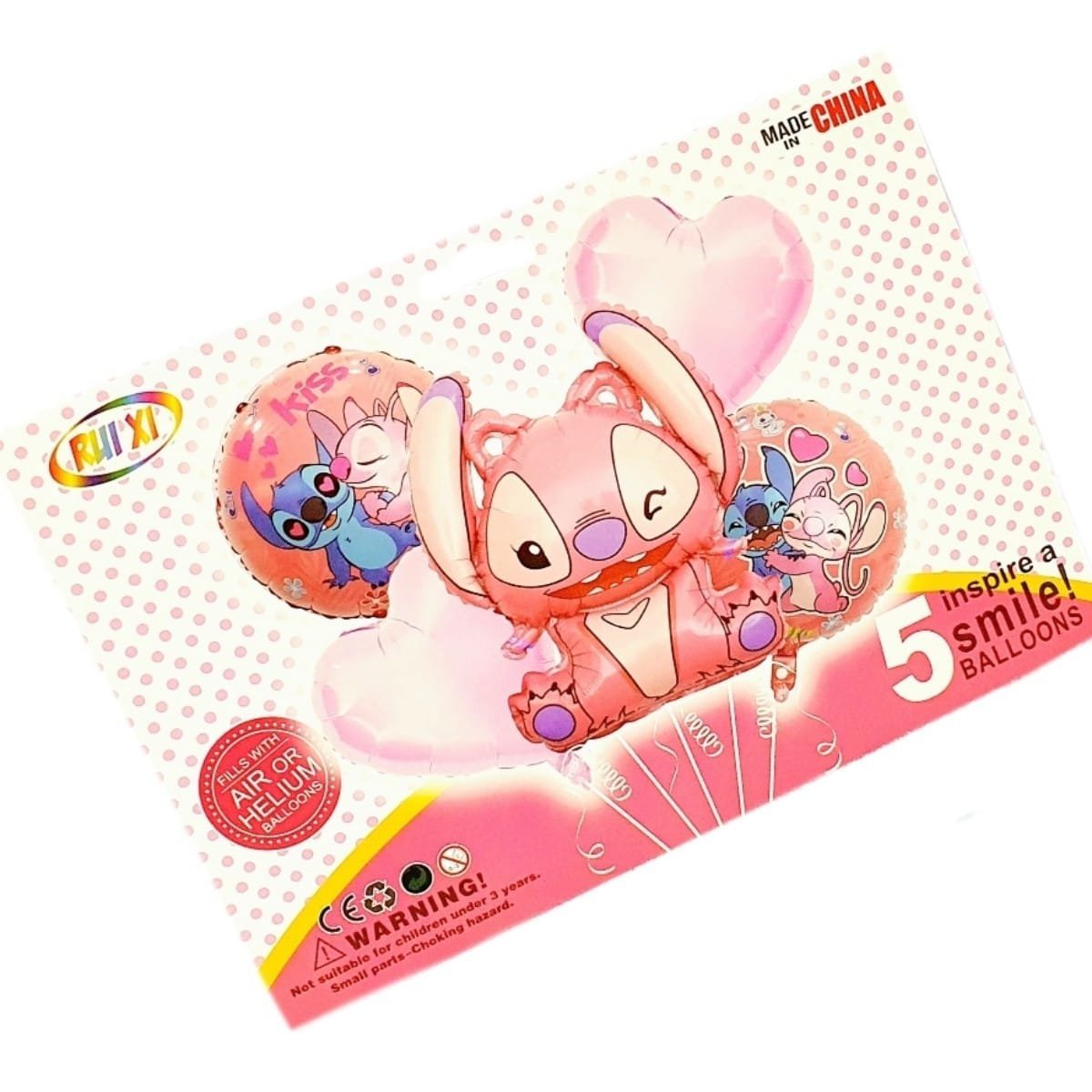 PAQUETE CON 5 GLOBOS METALICOS ANGEL STITCH LILO & STITCH FIESTA CUMPLEAÑOS 1 PZA